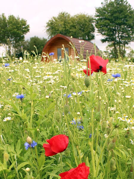 Parking is outside the pod field with a short walk to the pods.